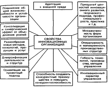 Свойства инновационных организаций, показанные на рис. 1, демонстрируют качество подсистем, структур, элементов и их связей внутри организации как открытой системы.