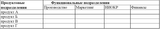 3. Продуктовая – подразумевает выделение подразделений по следующим признакам: