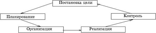 Управление осуществляется в рамках единого процесса управления (кольца управления), что показано на рис. [определение менеджмента и рисунок взяты из лекции, автор Е.Г. Непомнящий "Экономика и управление предприятием"].