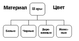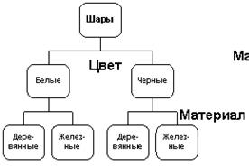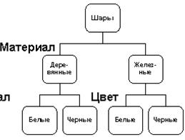 Возможен и третий подход. Шары сначала делятся по материалу, а потом по цвету. В данных случаях материал и цвет являются критериями декомпозиции (рис. 2.).
