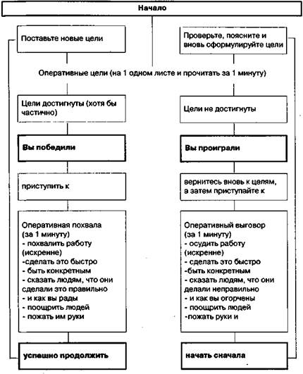 Оперативное управление – сжатое резюме о том, как менеджер может эффективно применить три основные идеи планирования. Кеинет Блэнчард, исследующий поведение организации, высказал несколько простых идей, или, как он сам их назвал, несколько «секретов» эффективного управления. Его три «секрета» – постановка целей, похвала и выговор, (рис. 4). Коротко обсудим каждый из этих аспектов «оперативного управления».