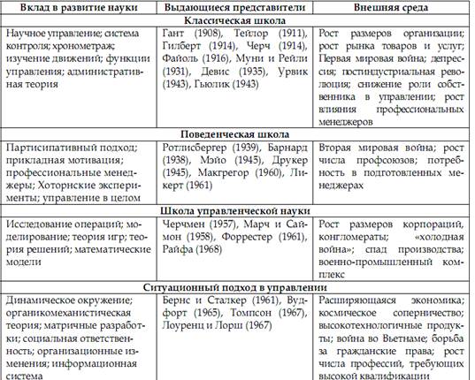 На научной основе организационное поведение развивалось с середины XIX в. в рамках следующих учений.