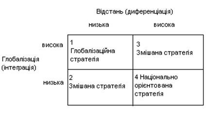 У процесі самостійного вивчення теми важливо сприйняти принципову особливість стратегічного планування в міжнародних корпораціях. Вона полягає в тому, що міжнародним компаніям доводиться при розробці стратегій робити складний вибір між глобалізацією та національною відданістю. Цей вибір ілюструє наведена матриця (рис. 1).