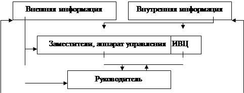 Информация является основой процесса управления, труд управляющего и состоит в ее изучении и обработке. От уровня организации сбора, обработки и передачи информации зависит эффективность управления. Различают внешнюю, входную информацию, первичную (исходную), которая возникает в ходе производства, и вторичную как результат обработки исходной информации. На рис. 17 приведена схема информационных связей руководителя.