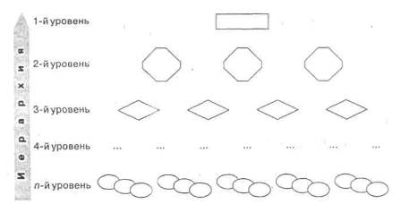 Позиционирование элементов по уровням модели приобретает четкую содержательную ориентацию, отражающую общую иерархию построения организационной структуры. В архитектонике такой модели, как правило, первому уровню соответствуют технологические, второму - линейные, третьему - функциональные, четвертому - координационные и т.д. признаки позиционирования элементов. Подобный подход к дифференцированию уровней организационной структуры отражает последовательность постановки и разрешения задач внутренней организации, соответствующую общей конфигурации построения древа цели организации. Это позволяет обосновать, выработать и применить единый подход к построению организационных структур, обеспечивающий комплексное формирование, эффективное функционирование и развитие организации.
