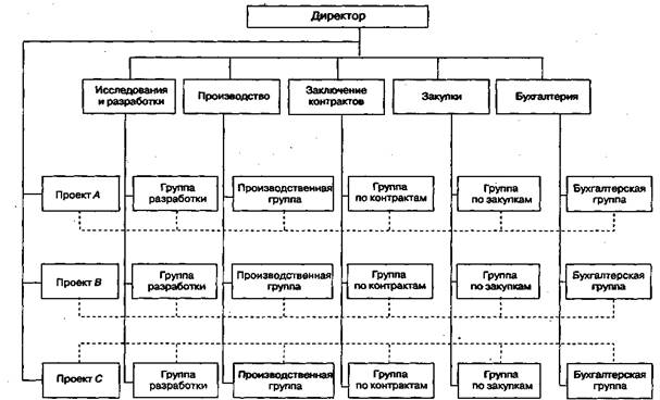 Таким образом, матричные структуры могут эффективно действовать при условии постоянного участия членов организации (за исключением высшего руководства) в работе проектов. При этом конкретные группы могут создаваться под определенные задачи и прекращать свое существование после их выполнения. Такие проектные группы легко реорганизуются и переукомплектовываются путем возвращения в отдел (цех, управление и т.д.) специалистов или, наоборот, привлечения новых сотрудников или ресурсов. Задача центрального координирующего органа организации - распределение и перераспределение материальных, информационных, финансовых и других ресурсов между отдельными проектами. Все это позволяет быстро реагировать на изменения во внешней среде, с максимальной эффективностью создавать новые продукты и постоянно использовать труд высококвалифицированных и, самое главное, необходимых в данный момент специалистов.