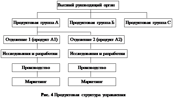 Известно, что предприятия, переходящие на продуктовый тип структурного построения, первоначально были функционально организованы. С расширением организаций руководители производственных, сбытовых и других подразделений, а также технические специалисты сталкивались с проблемами роста масштаба деятельности. Функции руководителя все более усложнялись, а диапазон управления ограничивал его возможности увеличения числа подчиненных. Структурная реорганизация на основе продукта стала рассматриваться как выход из создавшегося положения. Такой подход допускает делегирование высшим управленческим звеном обширных полномочий по руководству производственной, сбытовой, вспомогательной и инженерной деятельностью, связанной с изготовлением конкретного продукта или ассортимента продуктов (