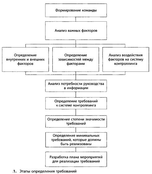 На базе анализа потребности руководящего состава в информации (например, посредством интервью) необходимо письменно зафиксировать сформулированные требования, чтобы избежать ненужных дискуссий по их интерпретации в ходе реализации. На практике часто оказывается, что сформулированные требования не могут быть удовлетворены на одном этапе. Поэтому нужно определить степень значимости требований, т.е. их последовательность в соответствии со срочностью и важностью. В любом случае на первом этапе следует установить минимальные требования, которые однозначно должны быть достигнуты за счет улучшения системы контроллинга (рис.1).