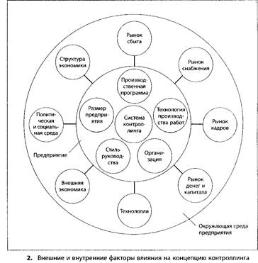 Нет системы контроллинга, в одинаковой мере оптимальной для всех предприятий. Чаще всего систему контроллинга приходится создавать заново специально для каждого предприятия. Она должна быть адаптирована к специфическим, контекстным факторам предприятия (рис.3.2). Под ними понимаются внешние и внутренние факторы влияния на концепцию контроллинга.