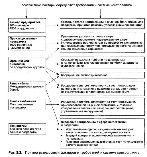Таким образом, мы имеем основные внутренние и внешние факторы для системы контроллинга данного предприятия. Мы не будем разрабатывать детально требования к контроллингу, а лишь покажем взаимосвязь между факторами и требованиями (рис. 3.3).