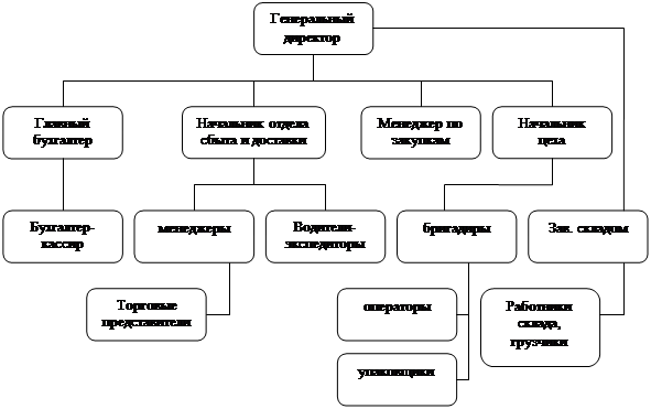 Начальнику цеха подчиняются бригадиры смен. Они организует работу смены, составляют режим производства, контролируют работу цеха, обеспечивают бесперебойную и технически правильную работу операторов и упаковщиков на требуемом уровне качества. Операторы и упаковщики – персонал, непосредственно участвующий в переработке продукции.