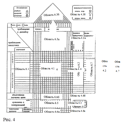 Желания заказчиков заносятся с левой стороны еще пустой матрицы будущего "Дома качества" и, таким образом, образуют горизонтальные строки матрицы (рис.4, область 4.1)":