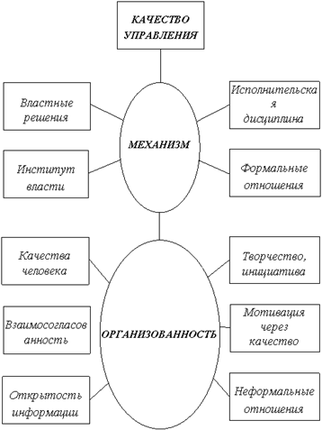 Рассматривая проблемы качества, следует обратить внимание на такую категорию, как управляемость, представляющую собой интегральный показатель организованности системы. По мнению ряда исследователей, управление есть соотношение между степенью контроля управляющей системы и степенью автономии управляемой системы. Управление, построенное на использовании властного механизма, культивирует: качество исполнительности, точного и своевременного исполнения властных решений; пассивность исполнителей, так как поток властных решений направлен только в одну сторону.