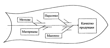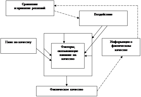 Данная схема представляется состоящей из шести блоков. К числу факторов, влияющих на качество (прямоугольник в центральной части схемы) относятся: