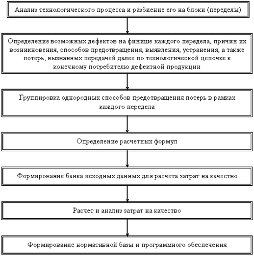 - для текущего анализа производить расчет затрат: связанных с содержанием подразделений по управлению качеством продукции или реализацией функций управления качеством продукции; с предотвращением дефектов в продукции, их выявлением и устранением, а также потери, обусловленные передачей далее по технологической цепочке и потребителям дефектной продукции.