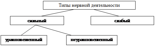 Одна из классификаций связывает особенности темперамента с различием типов высшей нервной деятельности. По учению физиолога И. П. Павлова, типы высшей нервной деятельности характеризуются такими основными свойствами, как сила, уравновешенность и подвижность процессов возбуждения и торможения. Под силой понимается работоспособность нервных клеток, их способность выносить сильное напряжение, не впадая в заторможенное состояние.