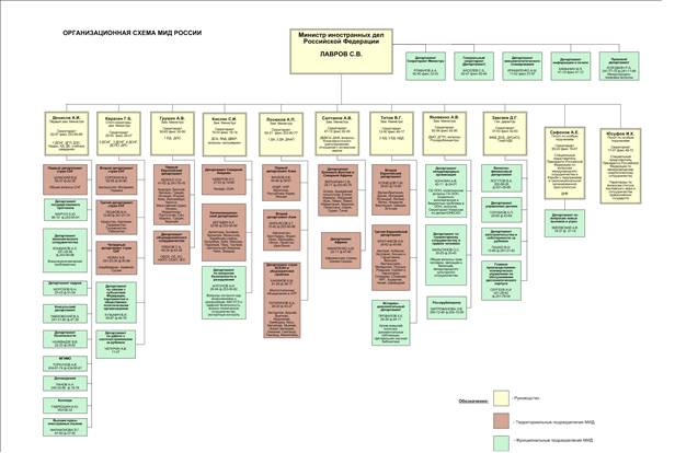 Структура управления министерства иностранных дел, а так же функции возлагаемые на министерство и его структурные подразделения закреплены указом Президента России.