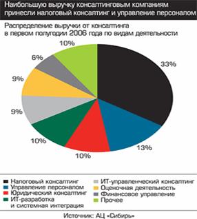 Как видно из графика, наиболее динамичная область консалтинга это управленческий консалтинг. Это говорит о том, что предприятия все чаще прибегают к услугам специалистов по вопросам персонала.