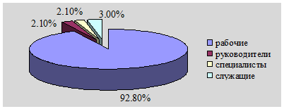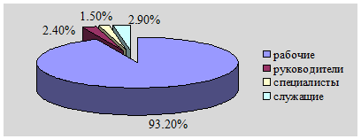 Численность руководителей в 2007 году составила 12 человек и по сравнению с 2006 г. уменьшилась на 1 человека или 7,7%. Численность служащих в 2007 г. составила 12 человек и по сравнению с 2006 г. увеличилась на 4 человека или на 50,0%. Численность специалистов за анализируемый период увеличилась на 3 человека или на 6,3%.