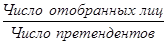 В процессе отбора происходит поиск людей на определенные должности с учетом установленных требований социального института, видов деятельности. Работники отделов кадров анализируют эффективность отбора, используя расчетный коэффициент, так называемый коэффициент отбора, который определяется следующим образом: