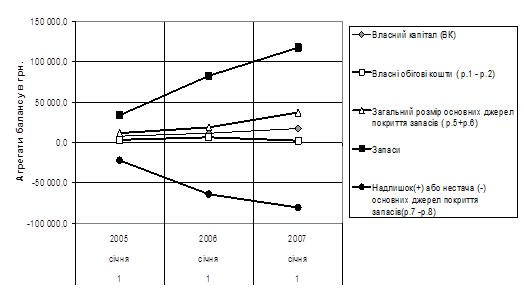 Таким чином, для 2006 року для активів підприємства характерні процеси практично повного використання грошових коштів підприємства, при цьому 44,4 % активів займає дебіторська заборгованість за реалізовану продукцію, а 44,1 % активів – запаси, тобто розвиток підприємства залежить від надходжень-ня коштів від реалізації для придбання в запаси наступної партії продукції.