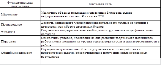Исходя из общей стратегии можно сформулировать цели функциональных подсистем.