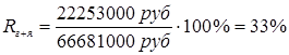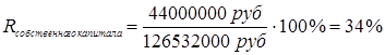 Данный показатель характеризует величину прибыли на один рубль собственных средств. Коэффициент рентабельности собственного капитала имеет важную роль при оценке уровня котировки акций на бирже.