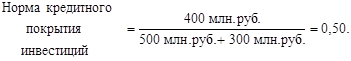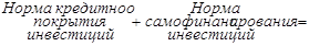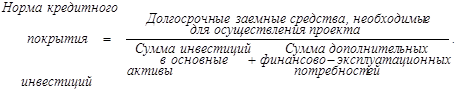 Потребность в дополнительном банковском кредите на покрытие дефицита оборотных средств, образующегося в процессе осуществления проекта, можно рассчитать с помощью двух показателей: нормы кредитного покрытия инвестиций (1) и нормы самофинансирования инвестиций (2),