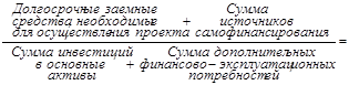 Проект нуждается в 500 млн. руб. инвестиций в основные активы и повышает финансово-эксплуатационные потребности предприятия на 300 млн. руб. Предприятие располагает источниками самофинансирования на сумму 200 млн. руб. и реальной возможностью привлечь 400 млн. руб. долгосрочных кредитов.
