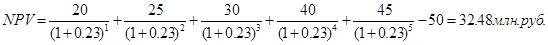 Если IRR больше цены капитала, который используется для финансирования проекта (46,6%>23%), то проект может быть одобрен администрацией общества.