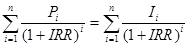 Исходя из этих определений в общем виде можно записать, соотношение для расчета критерия - "Внутренняя норма доходности" в следующем виде: