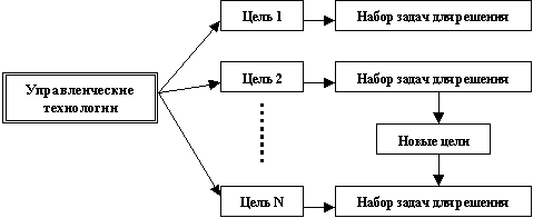 Управленческие технологии имеют двухъярусную структуру: технологии целевого управления и технологии процессорного управления.