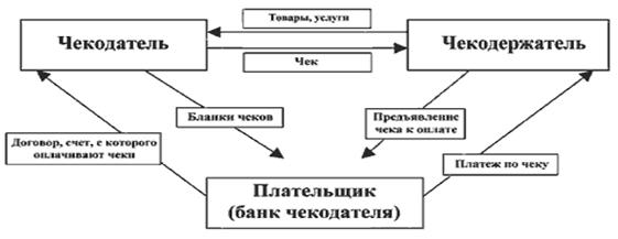 Чек - это ценная бумага, содержащая ничем не обусловленное распоряжение чекодателя банку произвести платеж указанной в нем суммы чекодержателю. Чекодателем является лицо (юридическое или физическое), имеющее денежные средства в банке, которыми он вправе распоряжаться путем выставления чеков, чекодержателем - лицо (юридическое или физическое), в пользу которого выдан чек, плательщиком - банк, в котором находятся денежные средства чекодателя.