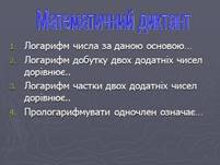2. Підібраний теоретичний матеріал по темі «Логарифмічні рівняння та нерівності»;