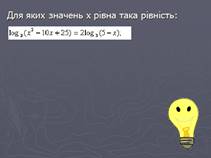 Приступаючи до розв’язування логарифмічних рівнянь, треба враховувати, що всі властивості логарифмічної функції були доведені за умови, що вирази, які стоять під знаком логарифма, додатні.