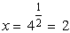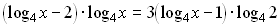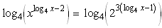 Розв’язання: Область визначення: . Тоді ліва і права частини цього рівняння додатні на області визначення. Прологарифмуємо обидві частини за основою 4:
