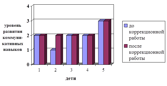 Вследствие того, что большее количество детей находились в неблагоприятных статусных категориях, уровень благополучия взаимоотношений, как и до коррекционной работы, оказался низким. В результате повторного обследования мы зафиксировали увеличение социометрического статуса у двух детей, что привело к изменению уровня сформированности коммуникативных навыков.