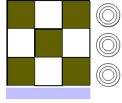 Дитині дають: ігрове поле, за зразком частини шахової дошки (3х3 клітини), смужку паперу (довжиною, яка дорівнює трьом клітинам поля) і три шашки. Вона повинна розмістити шашки на дошці так, щоб дорослий не зміг покласти смужку паперу на жодні три клітини підряд - ані горизонтально, ані вертикально, ані діагонально.