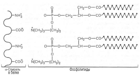 Рис. 1. Ионный тип связи между белками и фосфолипидами.