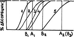 Если окажется, что при концентрации Аg белки 3 и 4 разделяются плохо, можно воспользоваться трехступенчатой элюцией, выбирая концентрации соли в точках Вр Bg и Bg. Тогда сначала выйдут хорошо разделившиеся белки 1 и 2, затем также неплохо разделенные белки 3 и 4 и, наконец, белок 5.