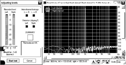 Ясно, что уровни записи и воспроизведения сильно влияют на уровень шумов и искажений в тестируемой цепи. Поэтому перед тестированием желательно отрегулировать уровни так, чтобы результаты тестирования были наилучшими. Можно проводить тестирование несколько раз и подбирать уровни для достижения наилучших результатов.