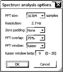 Kaiserwindowbeta- параметр окна Кайзера, регулирует степень подавления боковых лепестков. Если в спектре есть высокие пики, можно повысить до 13 - 15, если высоких пиков нет, можно не трогать или понизить до 5 - 7.