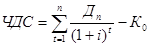 где К0 – сумма первоначальных инвестиций в нулевом периоде; Дn- будущая стоимость, полученная от реализации проекта инвестиций в годы от 1 до n; i – ставка процента на капитал (ставка дисконтирования); t – период, число лет.