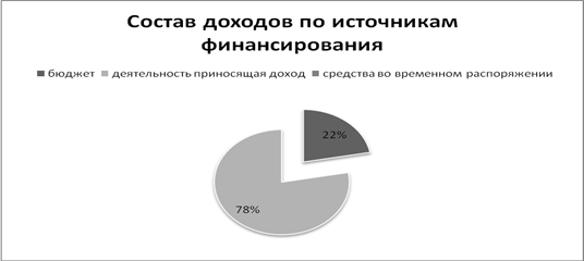 Графа 6 строк раздела доходов в отчете о финансовом результате не заполняется, следовательно, в части средств во временном распоряжении у бюджетной организации не может быть доходов и они делятся по двум большим группам в зависимости от источника финансирования: бюджет и предпринимательская деятельность (приносящая доход деятельность), причем большую часть из них составляют доходы второй группы. Наглядно это можно увидеть на рис. 1.