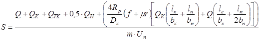 расчетное значение диаметра каната и КВШ, м; S – максимальное значение величины натяжения ветви каната, кН; [p] –