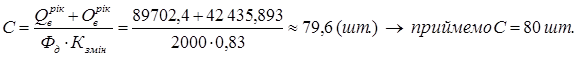 = 0,8…1,2 – коефіцієнт змінності роботи обладнання в ремонтній службі підприємства, приймемо Кзмін
