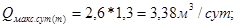 . – расход воды в сутки с максимальным водопотреблением, м3