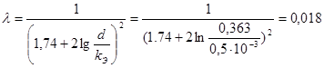 9)Так как трубы гидравлические шероховатые ,то для определения коэффициента трения используем формулу Никурадзе(3,19):