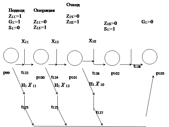 присваивается нулевое значение. После этого маркер проходит на выход сети, не вызывая работу манипулятора М1