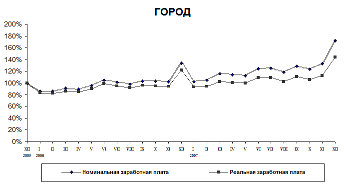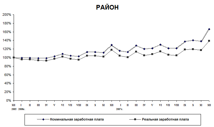 , рассчитанная с учетом индекса потребительских цен в декабре составила по городу – 118,2% к декабрю 2006 года, по району – 117,6%.